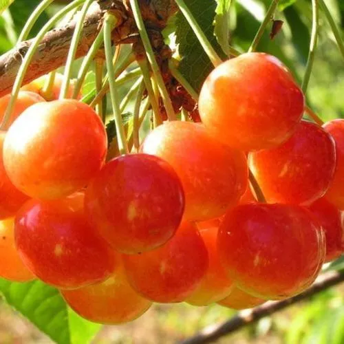 - Сердцевидные, жёлтого, с преобладающим красно-розовым покровом, цвета. Кожица прочная. Мякоть умеренно плотная и сочная, ярко-жёлтого цвета. Сок бесцветен. Косточка среднего размера, легко извлекается;