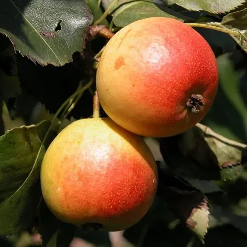 - Короткогрушевидной формы, золотисто-жёлтого цвета, с преобладающим малиново-красным размытым румянцем. Кожица гладкая, не толстая, покрыта умеренно заметными подкожными точками. Мякоть крайне приятная и сочная, маслянистая, кремово-белого цвета. Семена умеренной величины, коричневого цвета;
