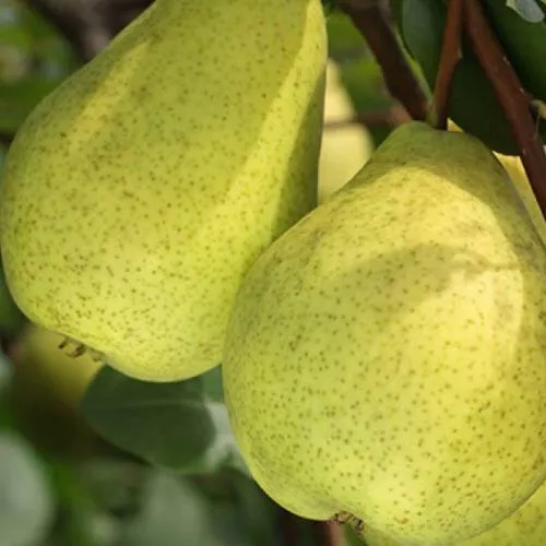 • Грушевидной, правильной формы, одного размера, зелёного, а при полном созревании – жёлто-зелёного, со слабым покровом, цвета, покрыты множеством сильно выраженным больших серых подкожных точек. Кожица не яркая, гладкая, сухая. Мякоть умеренно плотная и крайне сочная, приятная, полумаслянистая, по консистенции – мелкозернистая, белого цвета. Семечки большие, напоминают широкие кувшины, коричневого цвета;