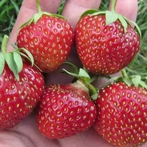 Ягоды клубники Вима-занта имеют ало-красный цвет с желтым кончиком. Их форма усеченно-коническая, а размер ягод крупный – от 35 до 42 грамм. Сладкий вкус клубники Вима-занта придает ее сочная и среднеплотная мякоть, а также выраженный аромат.