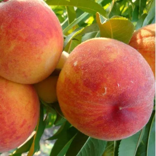 - Округлой формы, жёлтого, с красным покровом, цвета. Мякоть приятная и сочная, кремоватого цвета;