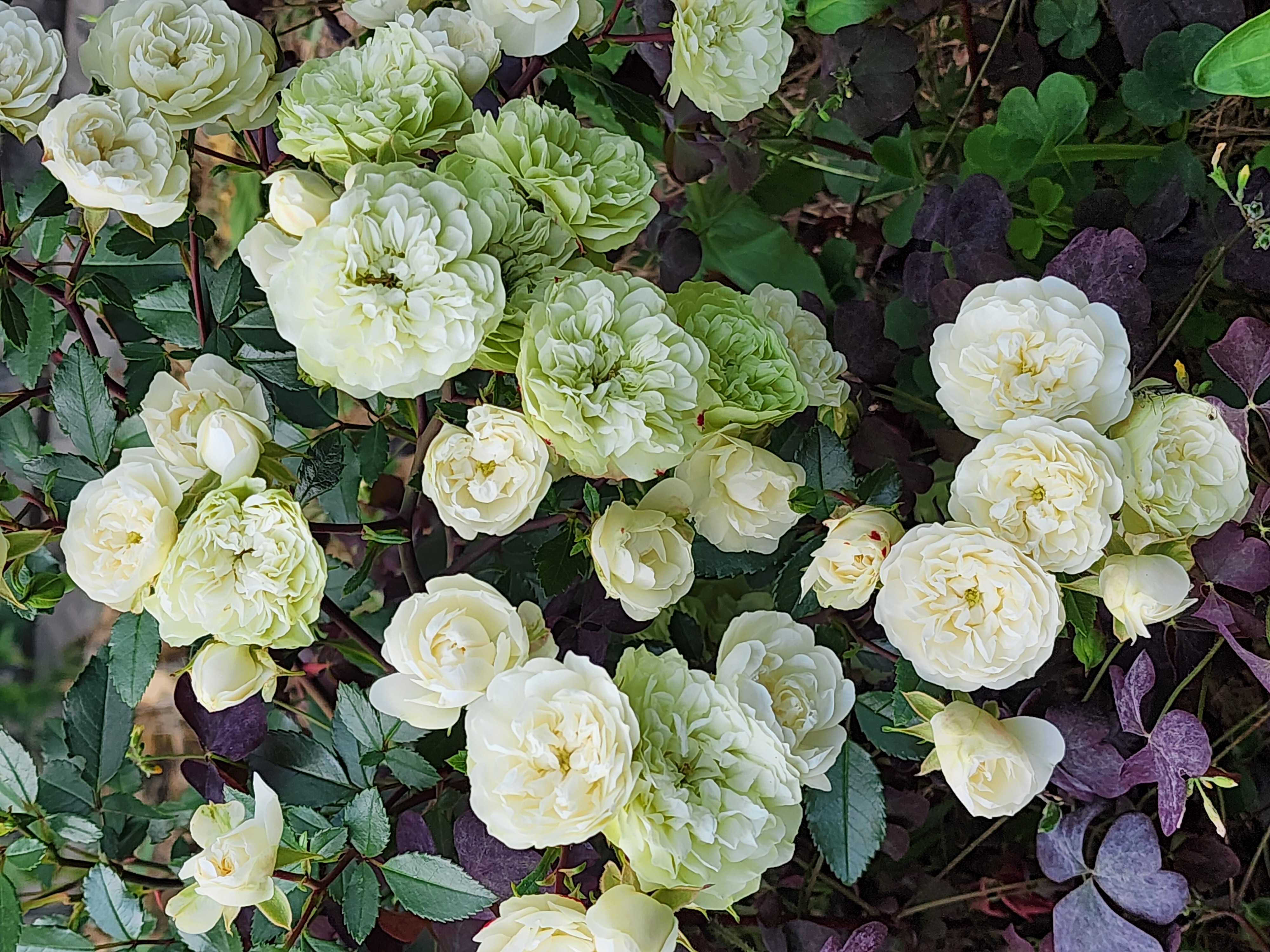 Свежая зелено-белая комбинация, которая выглядит прохладно даже в жаркий летний день! Эта миниатюрная роза цветет махровыми розетками с волнистыми лепестками около 2,5 см в диаметре, вначале белыми, а позднее нежно-зелеными. Цветки появляются в крупных кистях, так что в одной и той же кисти встречаются как белые, так и зеленые цветки. Обильно цветет ранним летом с последующими хорошими повторными волнами летом и осенью. Листва густая, темно-зеленая. Куст ветвистый, раскидистый, достигает 30-60 см в высоту и ширину. Эта компактная, легкая в уходе роза подойдет для переднего плана бордера, для обрамления дорожки, посадки на краю склона или в контейнере. Обрывание отцветших цветков стимулирует повторное цветение. Устойчивость к болезням отличная