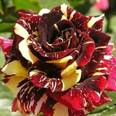 Цветок розы Фокус Покус – это настоящее произведение искусства. Каждый бутон классической бокаловидной формы раскрывается в чашевидный цветок с высоким центром, демонстрируя сложную игру красок. На темно-красном, бархатном фоне лепестков проступают яркие оранжево-кремовые и солнечно-желтые штрихи и полосы, создавая эффект живописной абстракции. Средние, махровые цветки диаметром 5-7 см, состоящие из 30-40 лепестков, появляются как поодиночке, так и в небольших изящных соцветиях по 3-5 штук на стебле. Нежный, едва уловимый аромат дополняет образ, а высокая стойкость в срезке, около 16 дней, позволяет надолго сохранить эту магию в вашем доме.