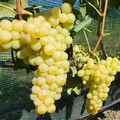 Ягоды среднего размера, с изящной округлой или слабо овальной формой, окрашены в благородный белый цвет. Сахаристость плодов варьируется от 19 до 24 г/100 см³, что в сочетании с титруемой кислотностью 4,5-5,5 г/дм³ дарит гармоничный вкус с легкой ноткой муската. Этот сорт идеально подойдет как для непосредственного употребления, так и для производства ароматного кишмиша.